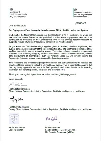 The attached acknowledgement reflects our active role in shaping the future regulatory landscape for AI in healthcare, working alongside key stakeholders, as well as the MHRA, to ensure a safe, effective, and forward-looking approach to innovation.